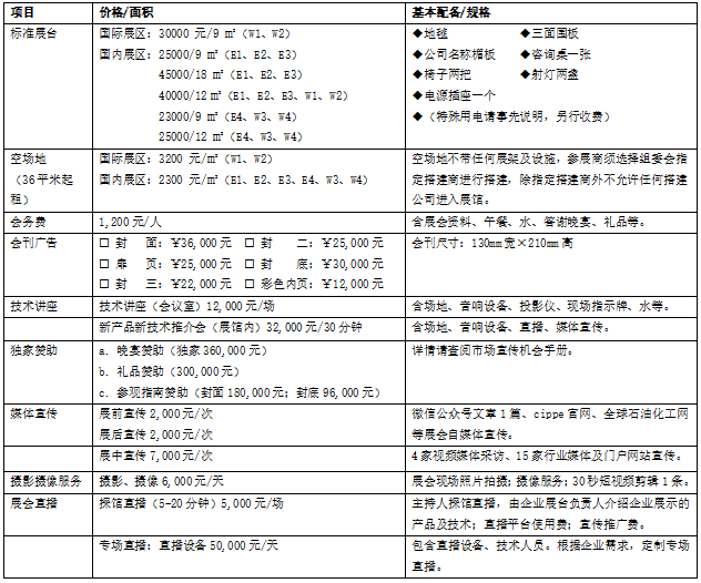 中国国际石油石化技术装备展览会(简称cippe),是国际石油石化行业例会。cippe吸引了来自全球75个国家和地区的2,000家展商,世界500强企业52家,国际展团18个,专业观众180,000人次,展会面积120,000平方米,目前已成为一年一度的世界石油天然气大会。