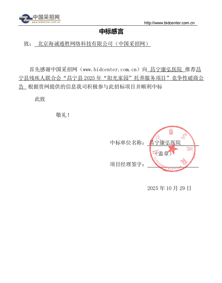 中标项目: 昌宁县残疾人联合会“昌宁县2025年“阳光家园”托养服务项目”竞争性磋商公告